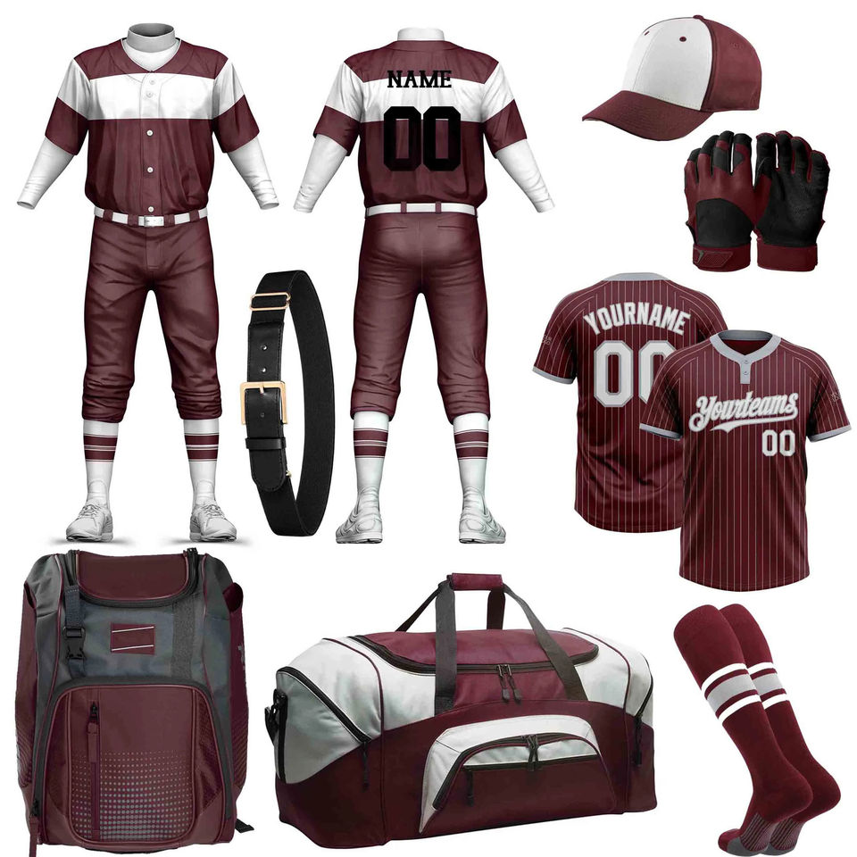 Kit de baseball personnalisé en gros, ensemble complet, uniforme, maillot, pantalon, gants, ceinture et sac pour les sports d'équipe
