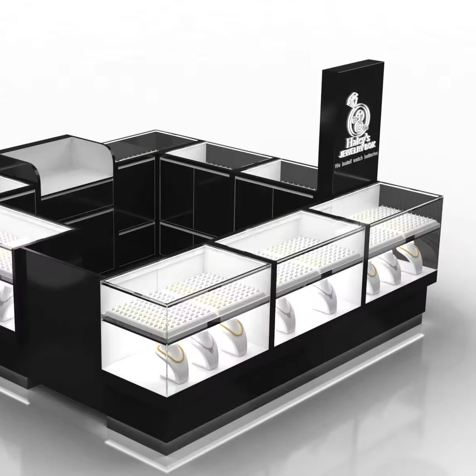 Wholesale Custom Black Box Wood Counter Cabinet Flooring for Jewelry Shop Window Set Premium Showcases