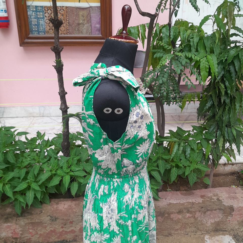 Product Name:Cotton Block Printed Fabric Dress With One Sleeve Shoulder