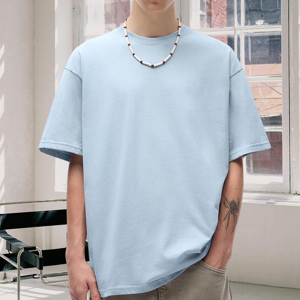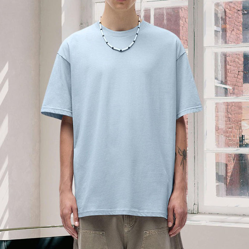 T-shirts Homme Personnalisés Coupe Boxy Couleur Unie Manches Courtes Épaules Tombantes Coupe Ample Grande Taille Écologiques Vente en Gros