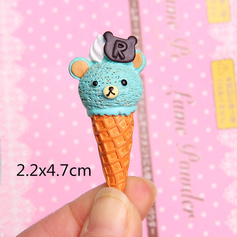 En gros Personnalisé Dessin Animé Frais Doux Mignon Ours Crème Glacée Miniature Plat Mode Pendentifs DIY Résine Charmes pour la Fabrication de Bijoux