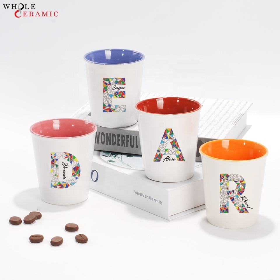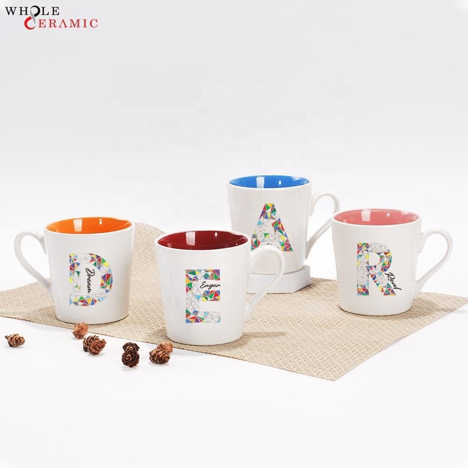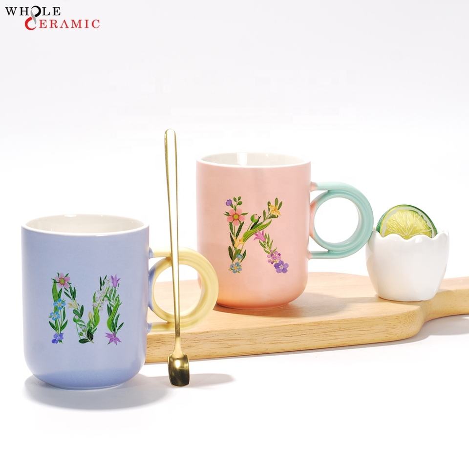 Tasses à café en céramique personnalisées en gros Tasses à lait et à eau de différentes formes, noms et lettres