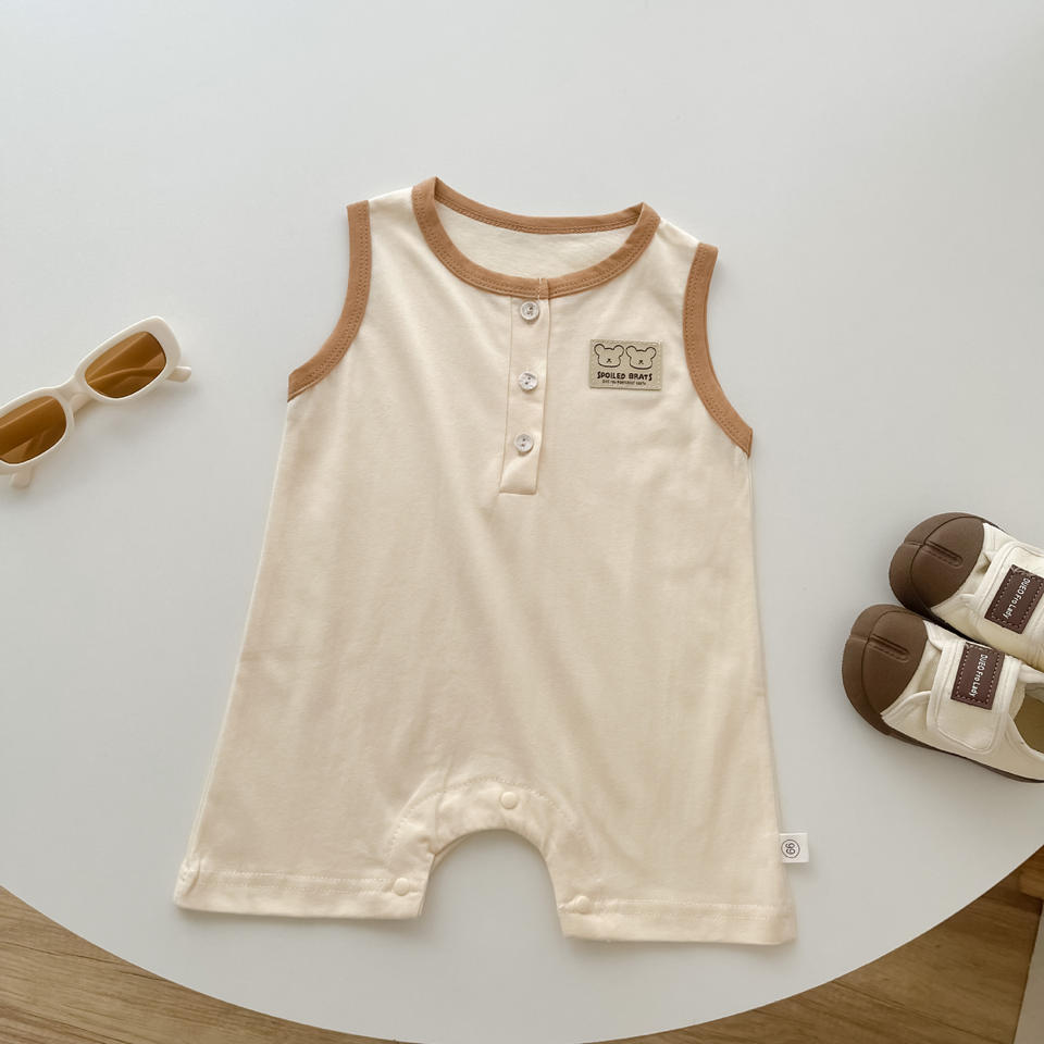 Vente en gros de grenouillère d'été bon marché pour nouveaux-nés de 3 à 6 mois en coton biologique côtelé sans manche sur mesure pour bébé fille et garçon
