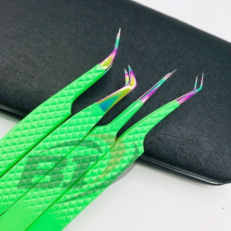 Pince à épiler professionnelle en acier inoxydable coloré sur mesure pour extensions de cils, avec étui magnétique à forte adhérence et pointe pour volume