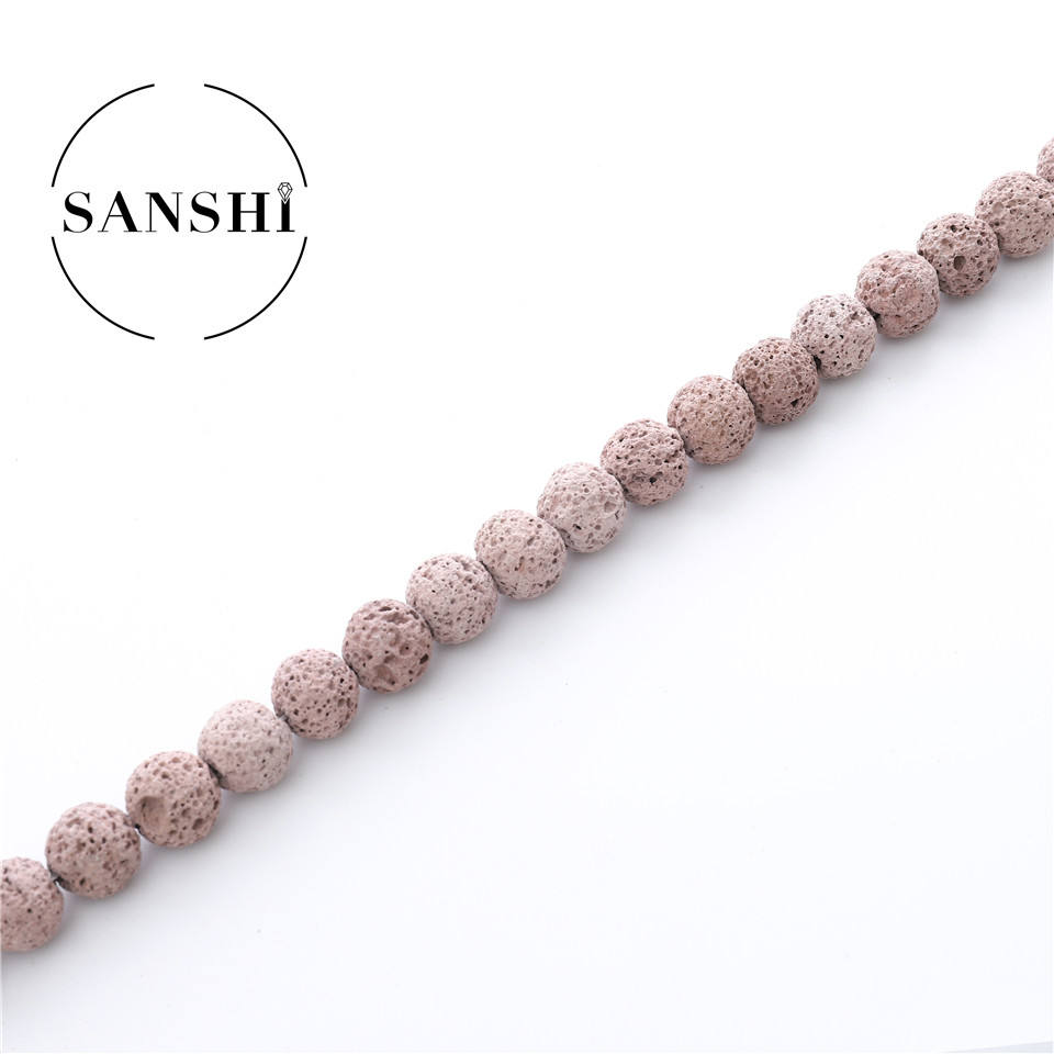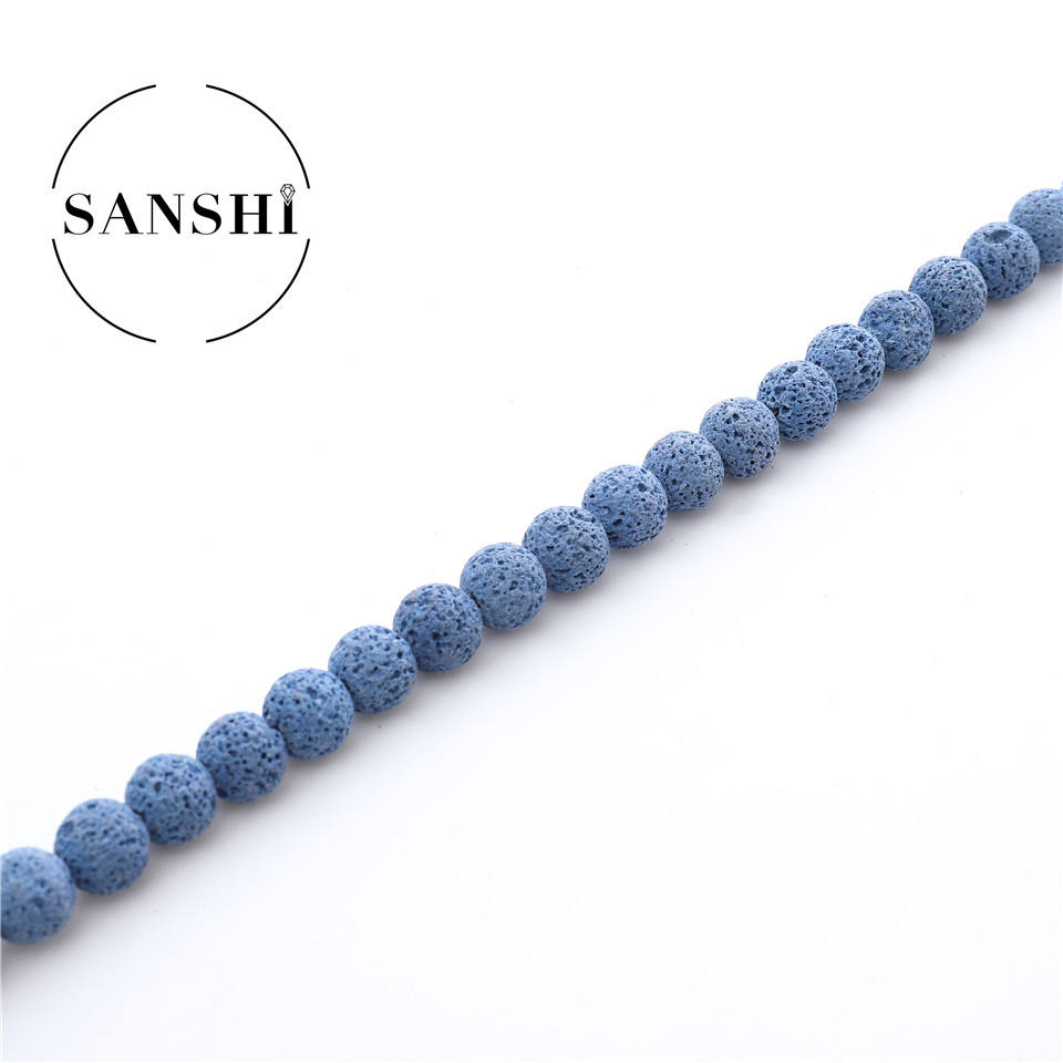 Perles rondes en pierre volcanique de lave de couleur personnalisée en gros pour le modèle de bijoux de femmes de bricolage BJ101 (origine du Zhejiang)
