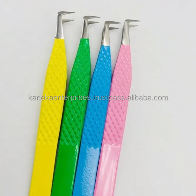 Pince à cils professionnelle en acier inoxydable japonais de couleur personnalisée en gros, précision antistatique, pointe nano pointue