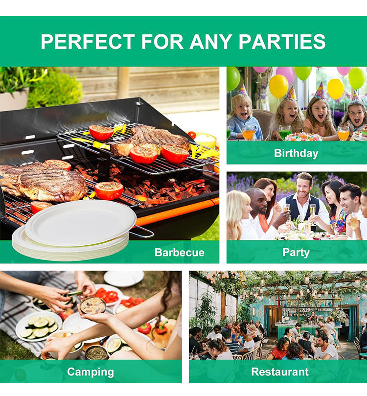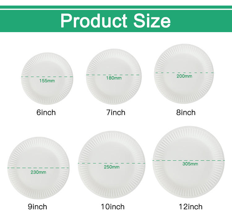 Assiettes jetables en carton blanc Composable Sur Mesure pour Gâteaux, Hot-dogs et Fêtes d'Anniversaire, 9 et 10 Pouces, En Gros avec Logo