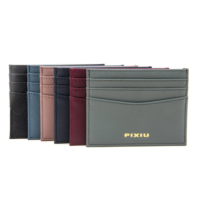 Vente en gros de cartes de crédit personnalisées Portefeuille en cuir Saffiano Porte-cartes en PU avec logo en feuille d'or