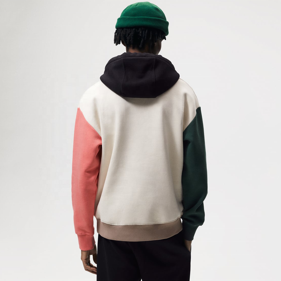 Vente en gros de pulls d'hiver en polaire personnalisés pour hommes sweat à capuche multicolore avec épaules tombantes cousues Patchwork 100% coton