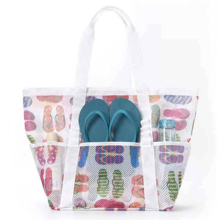 Sac de shopping réutilisable imperméable à motif mignon personnalisé en gros, sac de voyage en maille de nylon, sac de plage pour femmes, sac de week-end
