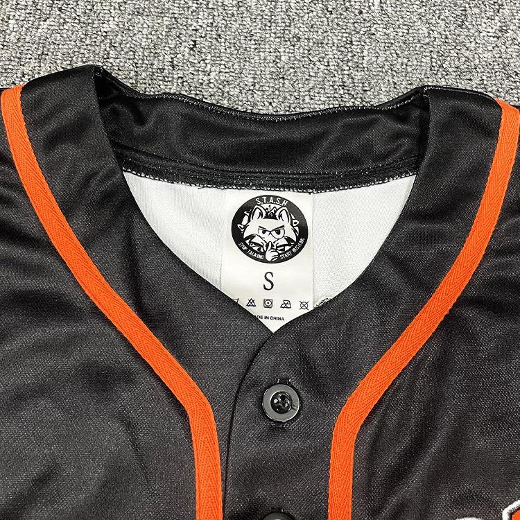 Maillot de baseball noir personnalisé en gros, impression par transfert thermique, anti-UV, en Spandex/Polyester, vêtement de sport grande taille