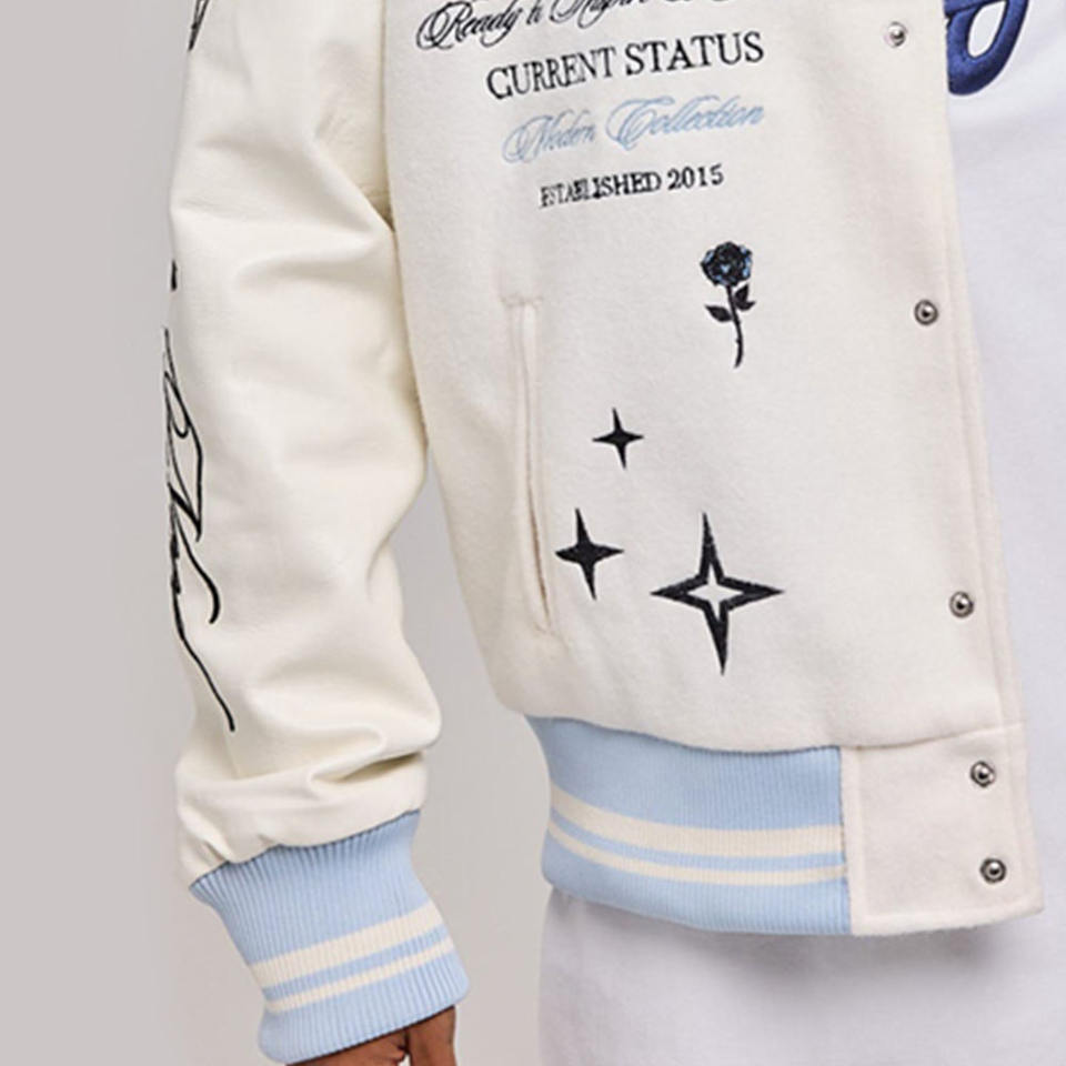 Veste universitaire blanche à motif brodé pour hommes Letterman College Baseball Bomber veste d'hiver Vente en gros sur mesure