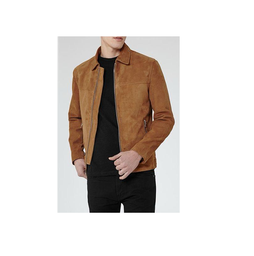 Veste en cuir véritable à fermeture éclair courte en daim marron pour hommes de conception personnalisée en gros produit de qualité supérieure
