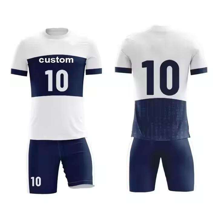 Maillots de football personnalisés en gros de haute qualité 100 % polyester, maillot + short, logo respirant et séchage rapide