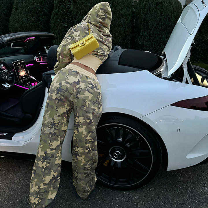 Survêtement Slim Fit de style camouflage pour femmes au design personnalisé en gros Vêtements de sport pour femmes