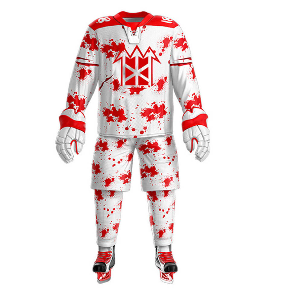 Vêtements de hockey sur glace pour adultes personnalisés en gros, uniforme imprimé de haute qualité, respirant, à séchage rapide, ensemble maillot et pantalon unisexe