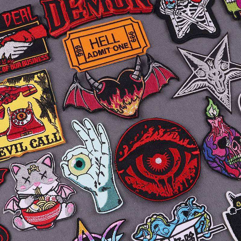 Patchs brodés personnalisés en gros pour créateurs, badges DIY démoniaques pour sacs à dos, patchs brodés thermocollants hippie pour vêtements