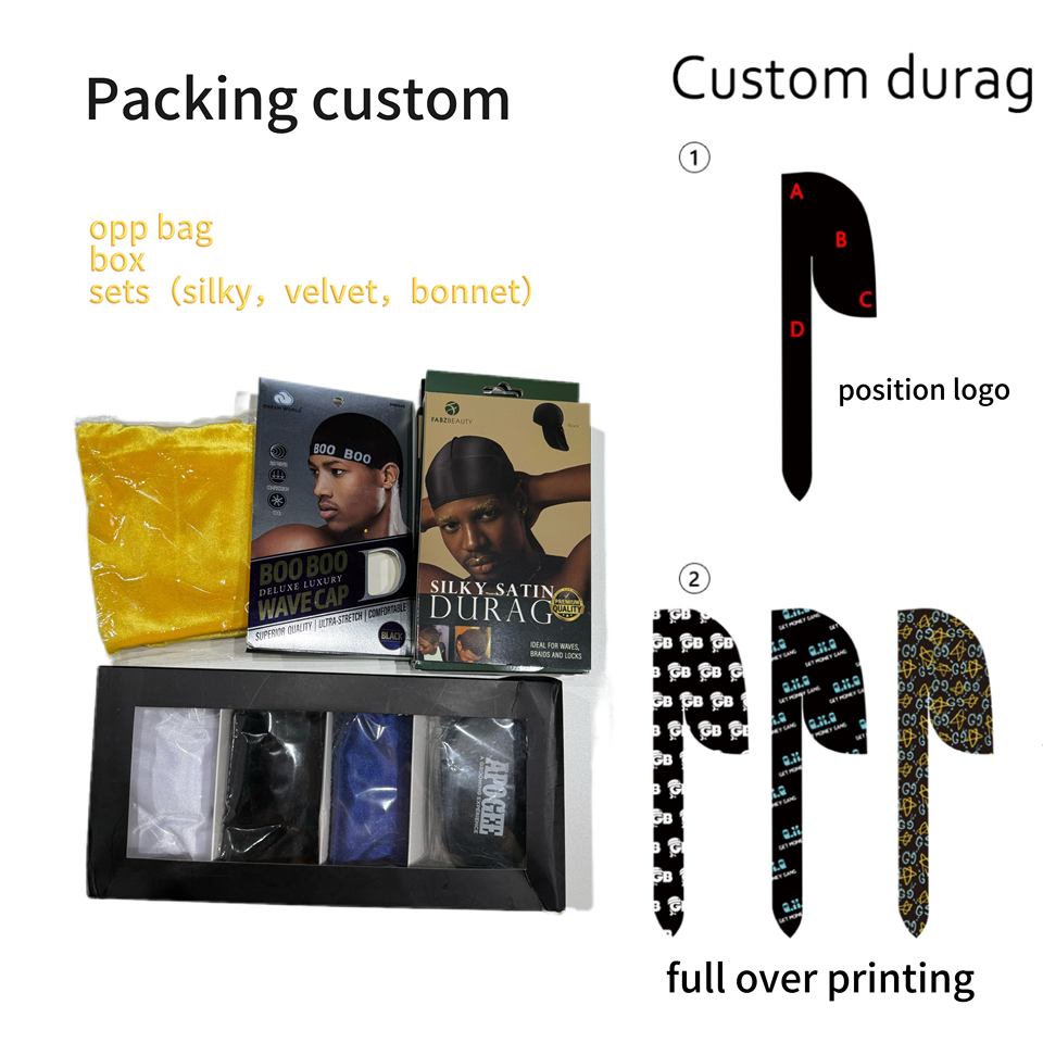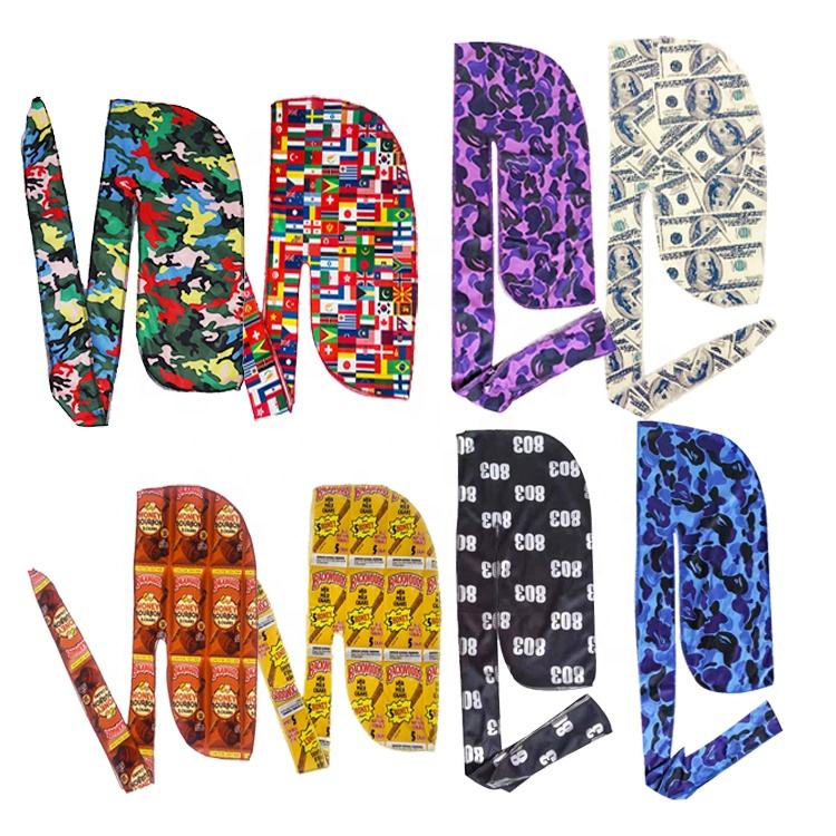 Durag soyeux en satin à longue queue personnalisé pour hommes durags en soie pour hommes vente en gros