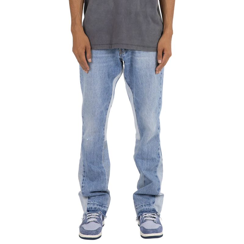 Vente en gros de pantalons jeans en denim évasés droits pour hommes, baggy, décontractés, style vintage, coupe skinny bleue