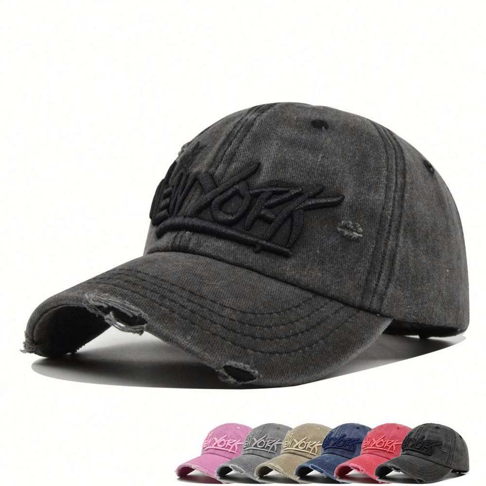 Wholesale Custom Distressed Embroidered 6-Panel Baseball Cap Dad Hat Vintage Sporty Formal Denim Washed High Quality