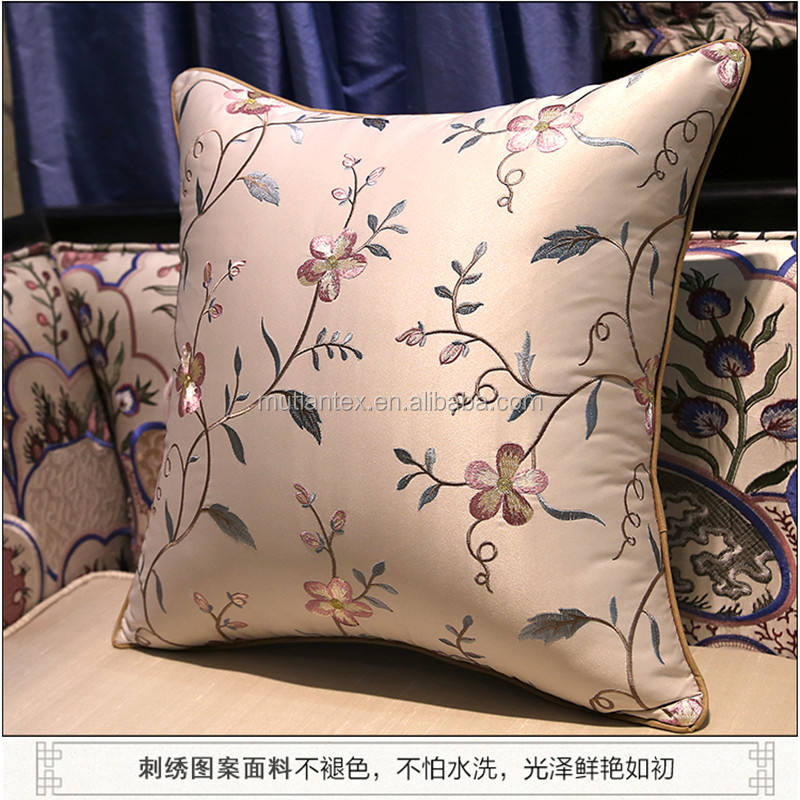 Vente en gros de taie d'oreiller doupioni 100% polyester brodé personnalisé taie d'oreiller carrée brodée pour la décoration intérieure
