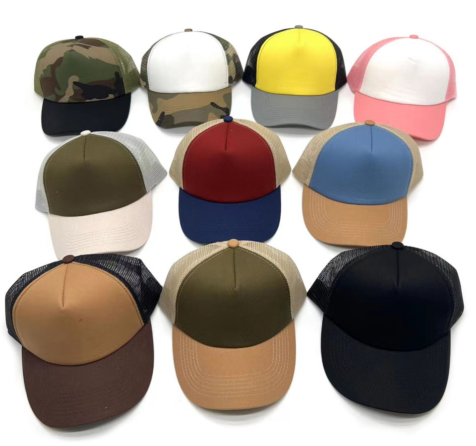 Chapeau de camionneur en mousse à 5 panneaux brodé sur mesure en gros casquettes en maille de coton en toile unie pour couvre-chef