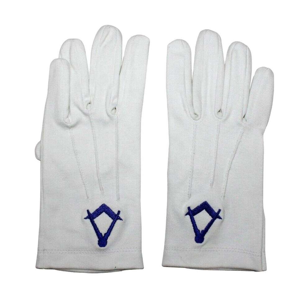 Wholesale Custom Embroidery Cotton Gloves Breathable White Soft Masonic Regalia Gloves for Sale