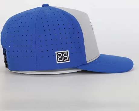 Casquette de baseball en polyester à 5 panneaux avec logo brodé personnalisé en gros, OEM, haute qualité, imperméable, Gorras, découpe laser, trou, fermeture à pression