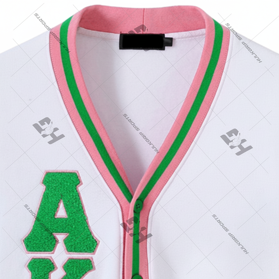 Vente en gros de cardigan en tricot doux et confortable en coton 100% avec logo brodé personnalisé, lettre grecque, Alpha 1908, pull de sororité pour femme, tricot