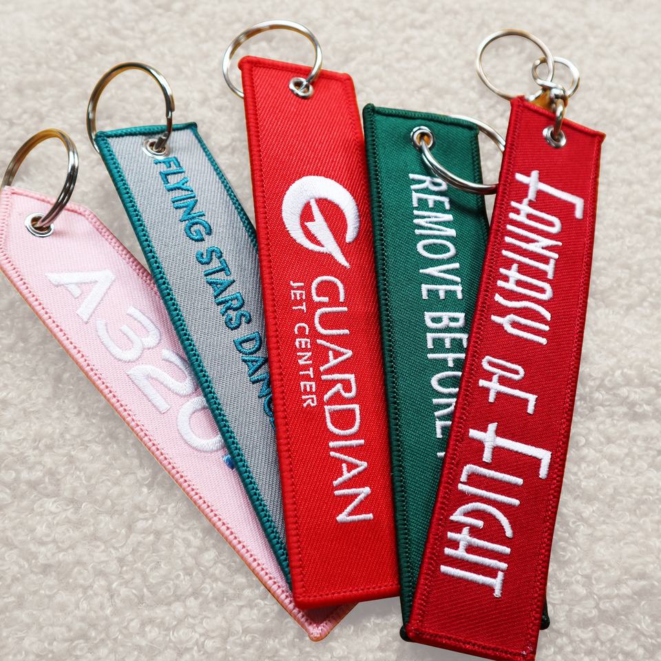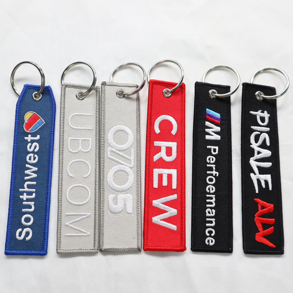 Porte-clés avec patch brodé double face et logo personnalisé.Nom du produit