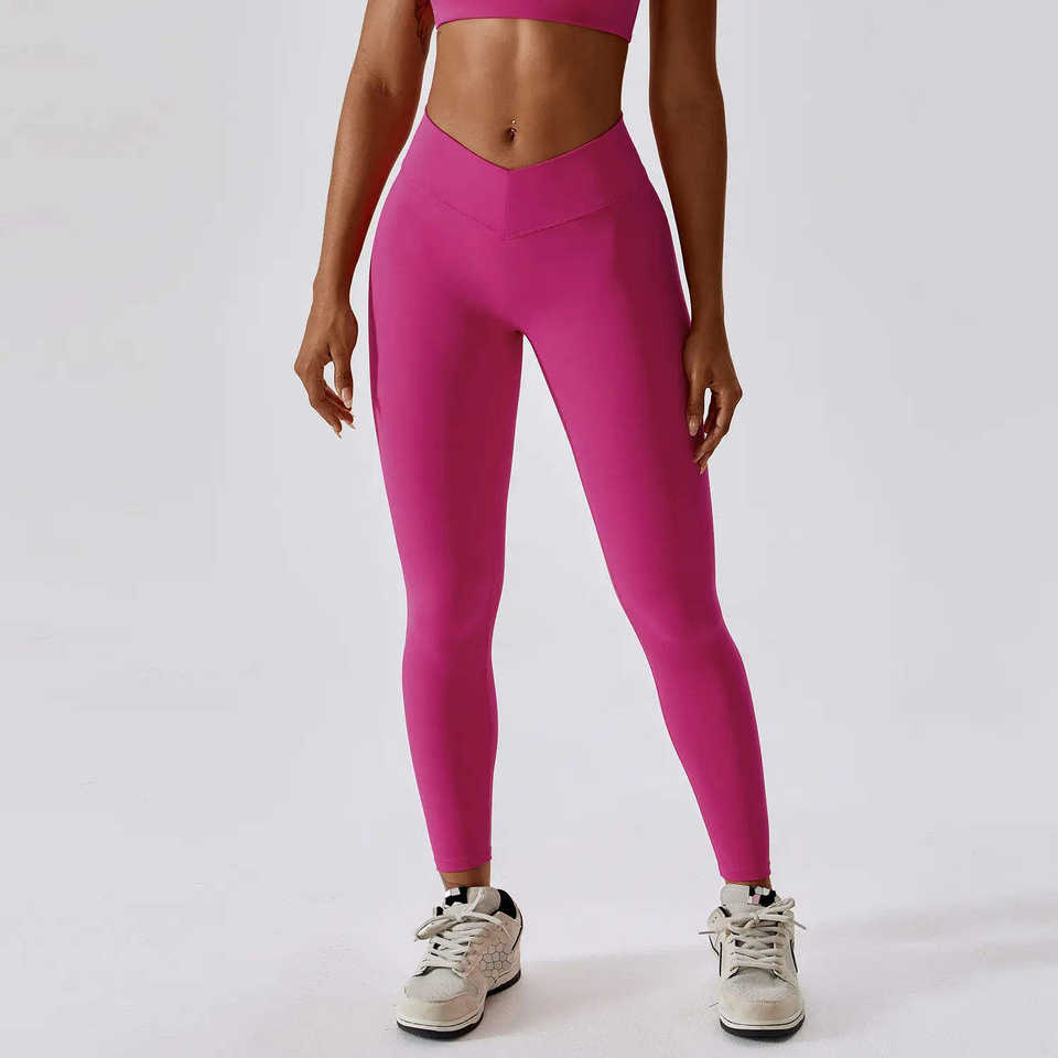 Collants de sport en tissu extensible 4 directions à double tricot, taille en V, couleur unie, pour l'entraînement, vente en gros, directement de l'usine