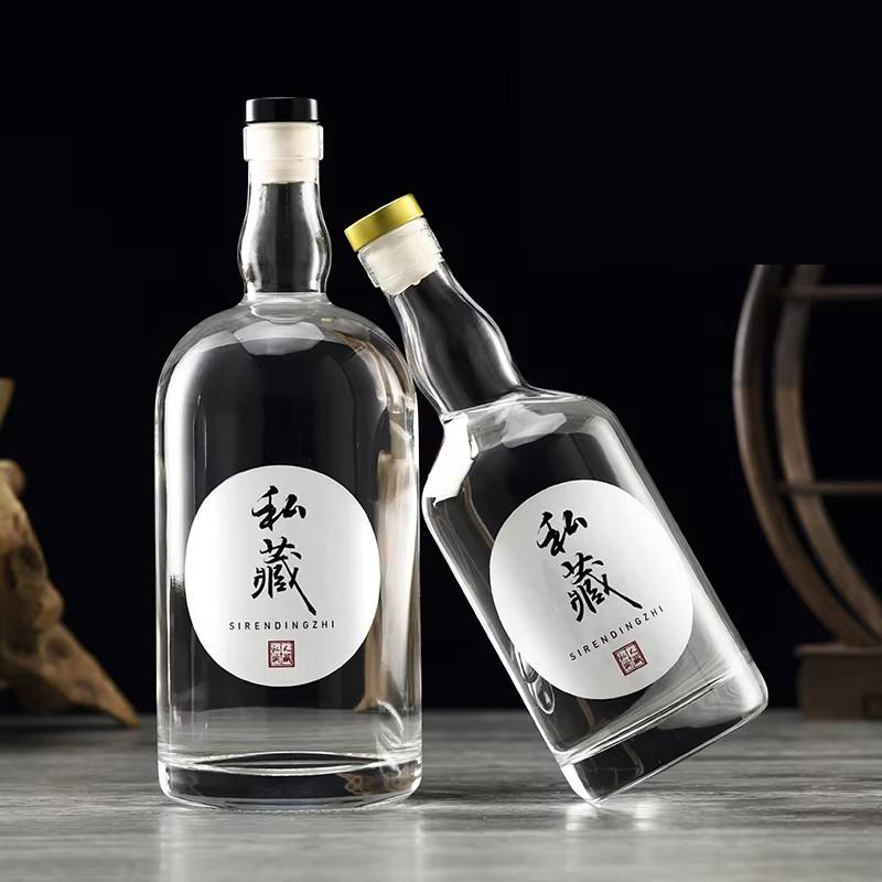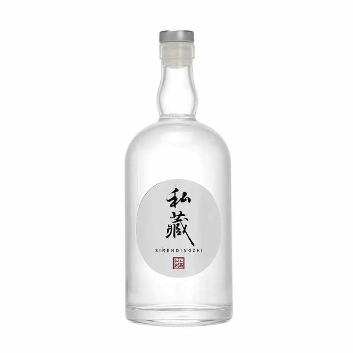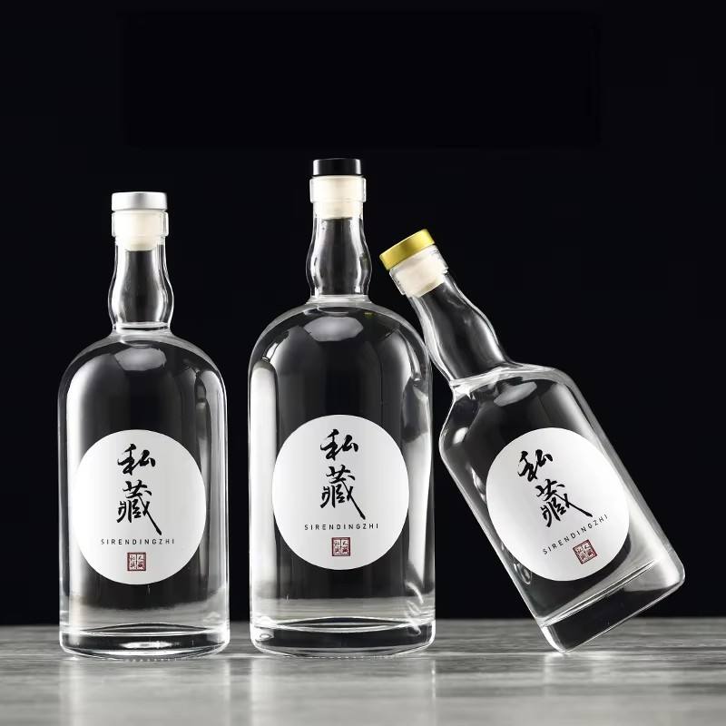 Bouteille en verre vide de 500 ml, ronde, classique, transparente, personnalisée, pour brandy, gin, rhum, vodka, tequila, liqueur, avec bouchon en liège, vente en gros