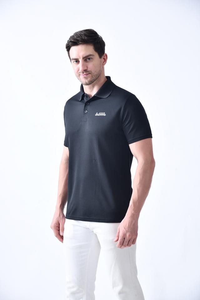 T-shirt pour homme avec logo personnalisé sur le devant, en maille à pois, absorbant la transpiration, design contrasté avec boutons en os, t-shirt décontracté pour homme