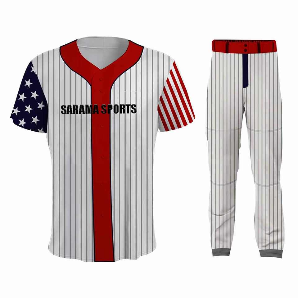 Ventes en gros de maillots et pantalons de baseball personnalisés avec impression par sublimation intégrale, uniformes d'équipe de baseball