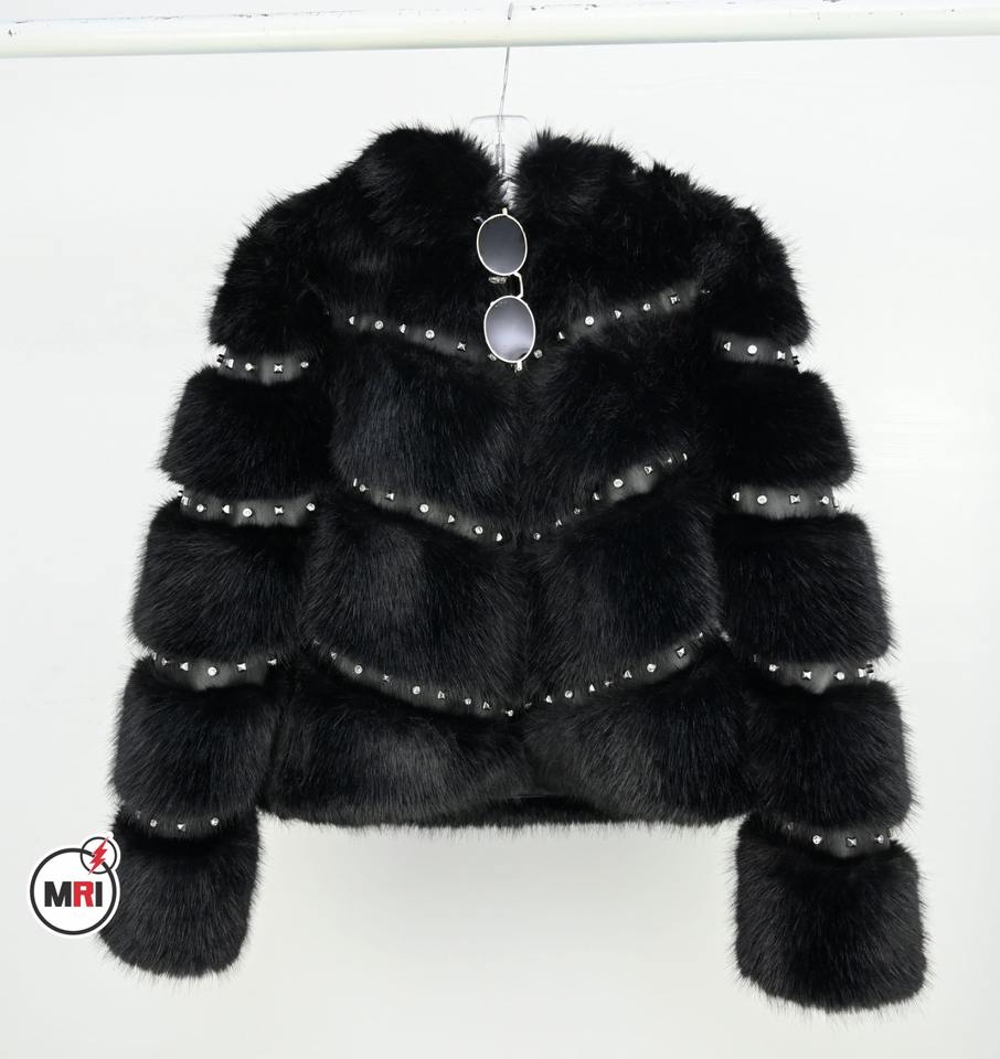 Vente en gros manteau de fourrure personnalisé style punk rivet décoration fermeture éclair col montant classique OEM veste de mode en fourrure pour femmes