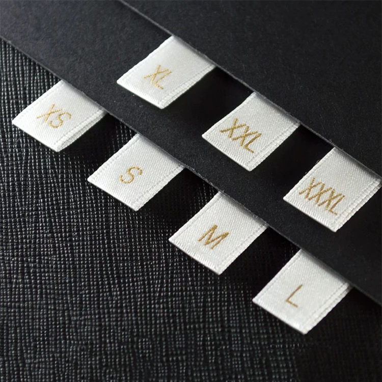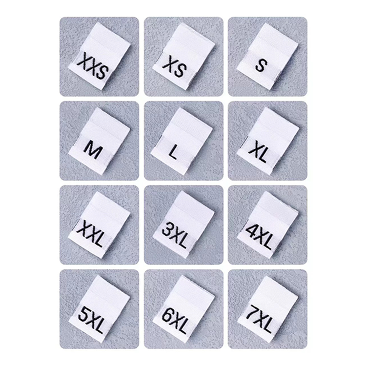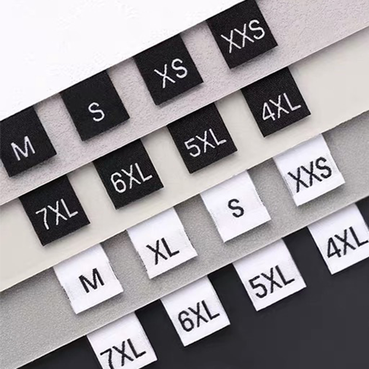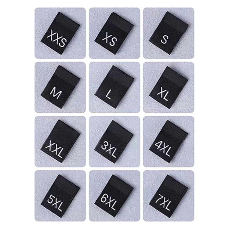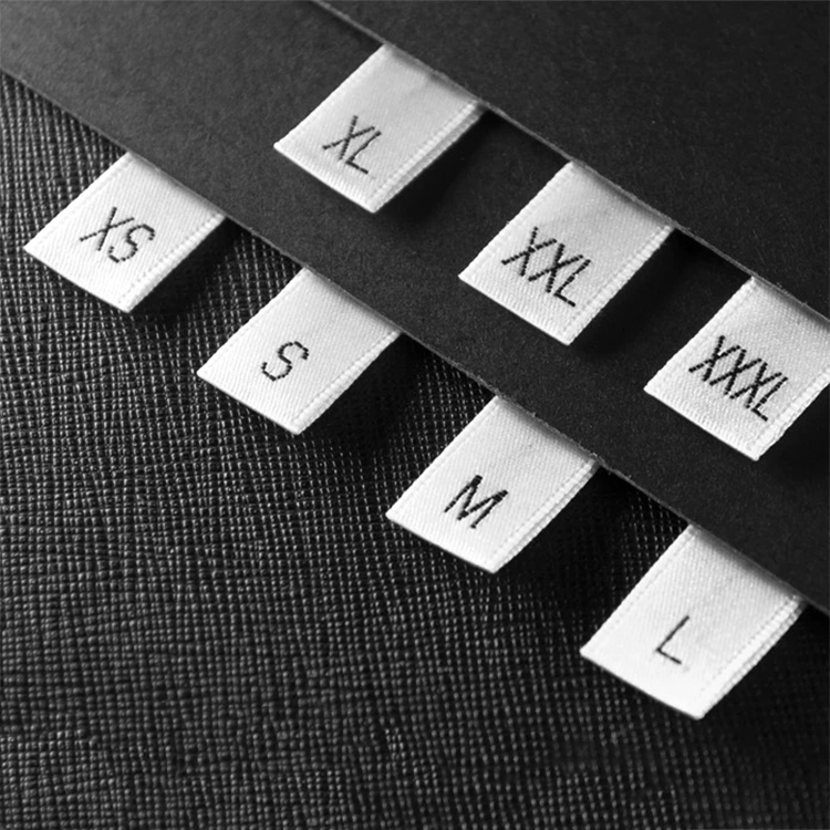 Étiquette tissée personnalisée pour vêtements en gros, étiquette de logo brodée personnalisée, étiquette de taille de vêtement