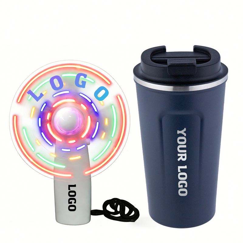 Mini-ventilateur portable personnalisé en gros avec logo et message LED, ventilateur à batterie créatif avec LED clignotante pour événements promotionnels professionnels