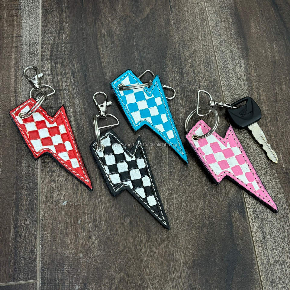Nom du produit:Porte-clés en cuir à carreaux façonné à la main