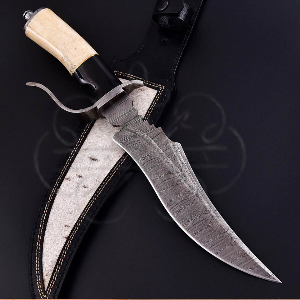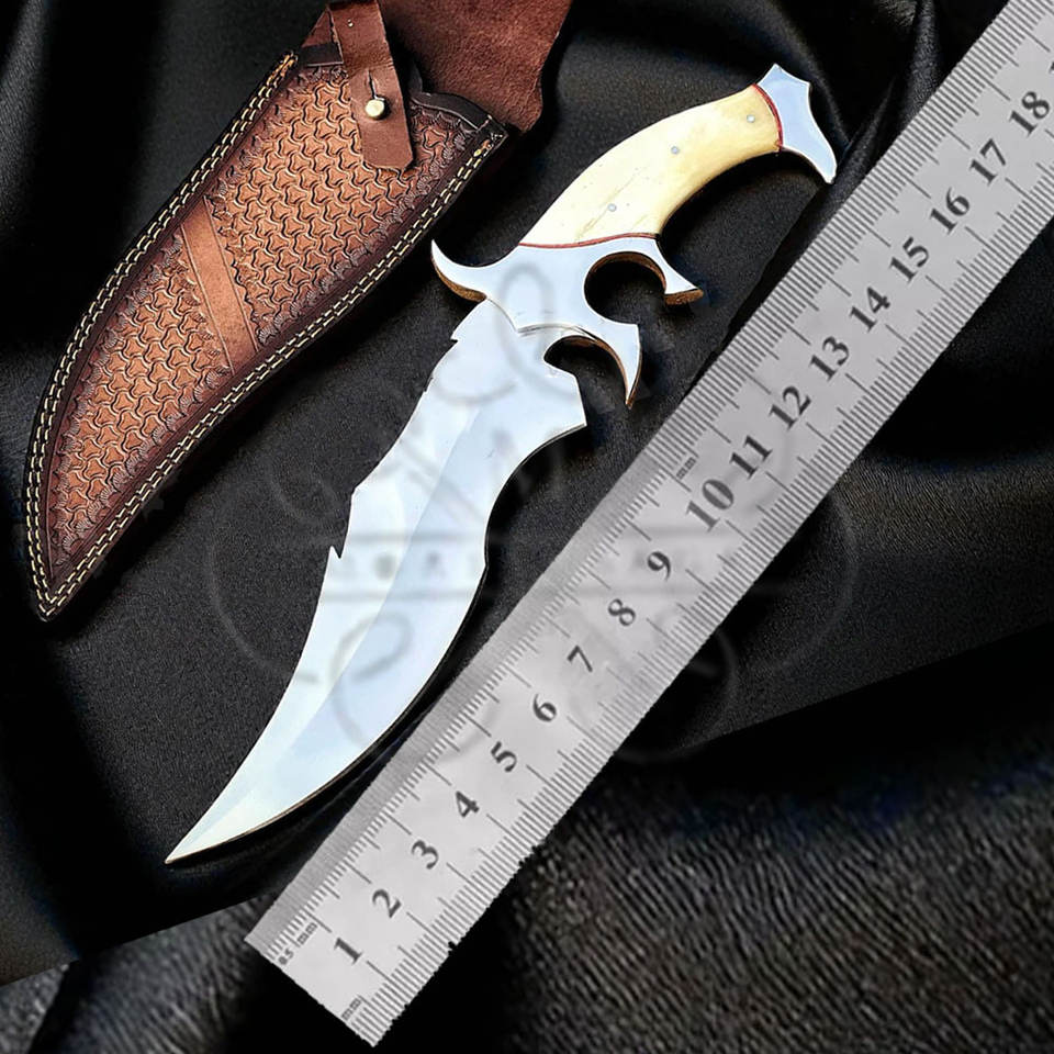 Couteau de chasse artisanal en acier D2 sur mesure avec étui en cuir, fournisseur OEM de couteaux de survie Bushcraft