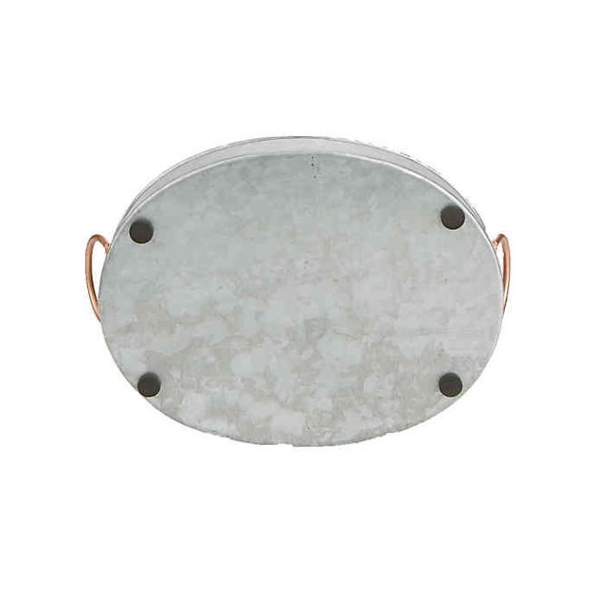 Vente en gros de plateau de service ovale en métal galvanisé fait main personnalisé avec poignées finition polie durable passe au lave-vaisselle