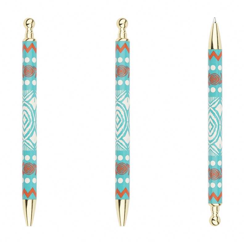 Stylos à bille en métal personnalisés avec motif par transfert thermique, style ethnique turquoise/bleu, cadeaux promotionnels de bureau en gros