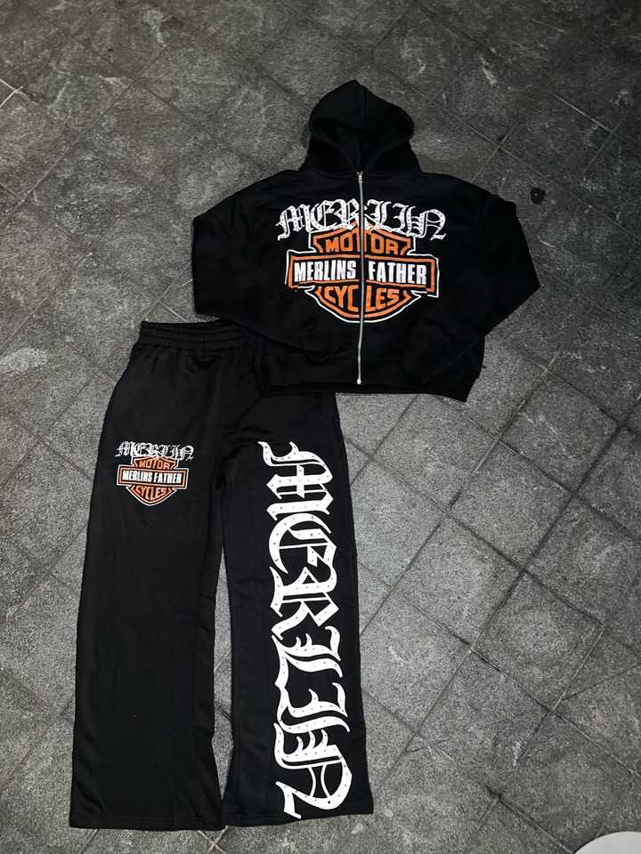 Vente en gros Ensembles pantalons de survêtement et sweat à capuche évasés avec broderie d'un poids lourd personnalisé Vêtements de rue délavés à l'acide Survêtement baggy en coton