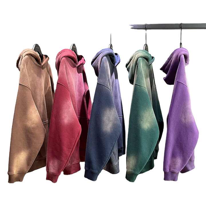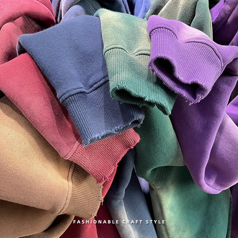 Wholesale Custom Heavyweight Men's Streetwear Hoodies Acid Washed Vintage Tattered Loose Polar Fleece Basic Hoodie 100% Cotton