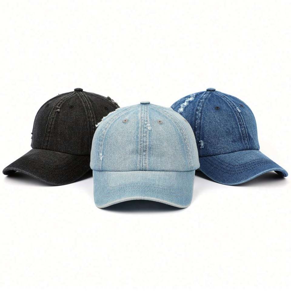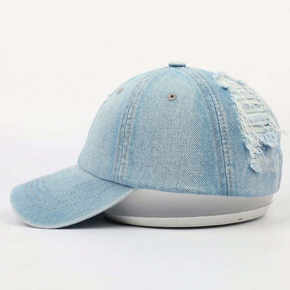 Casquette de baseball en jean non structurée à 6 panneaux de haute qualité, personnalisable en gros, avec boucle métallique unie OEM, casquettes de baseball pour femmes effet vieilli vierges