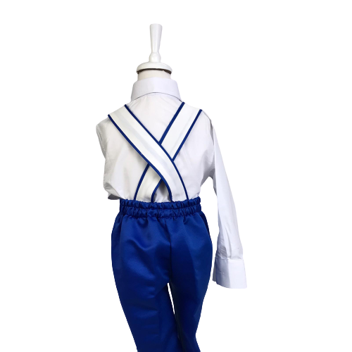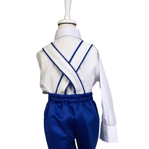 Vente en gros de jupe salopette bleue de première qualité, vêtements tricotés de printemps pour garçons, vêtements de Boutique modernes pour enfants