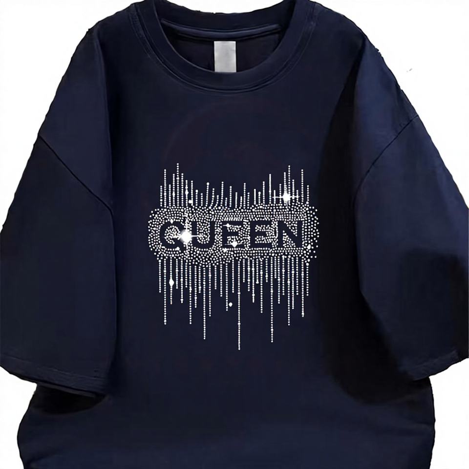 T-shirt ample pour femme en coton 100% écologique, personnalisé avec logo et design, orné de strass de haute qualité – Vente en gros