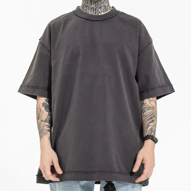 Vente en gros de t-shirts personnalisés de haute qualité vêtements pour hommes 300 gsm t-shirt ras du cou délavé surdimensionné
