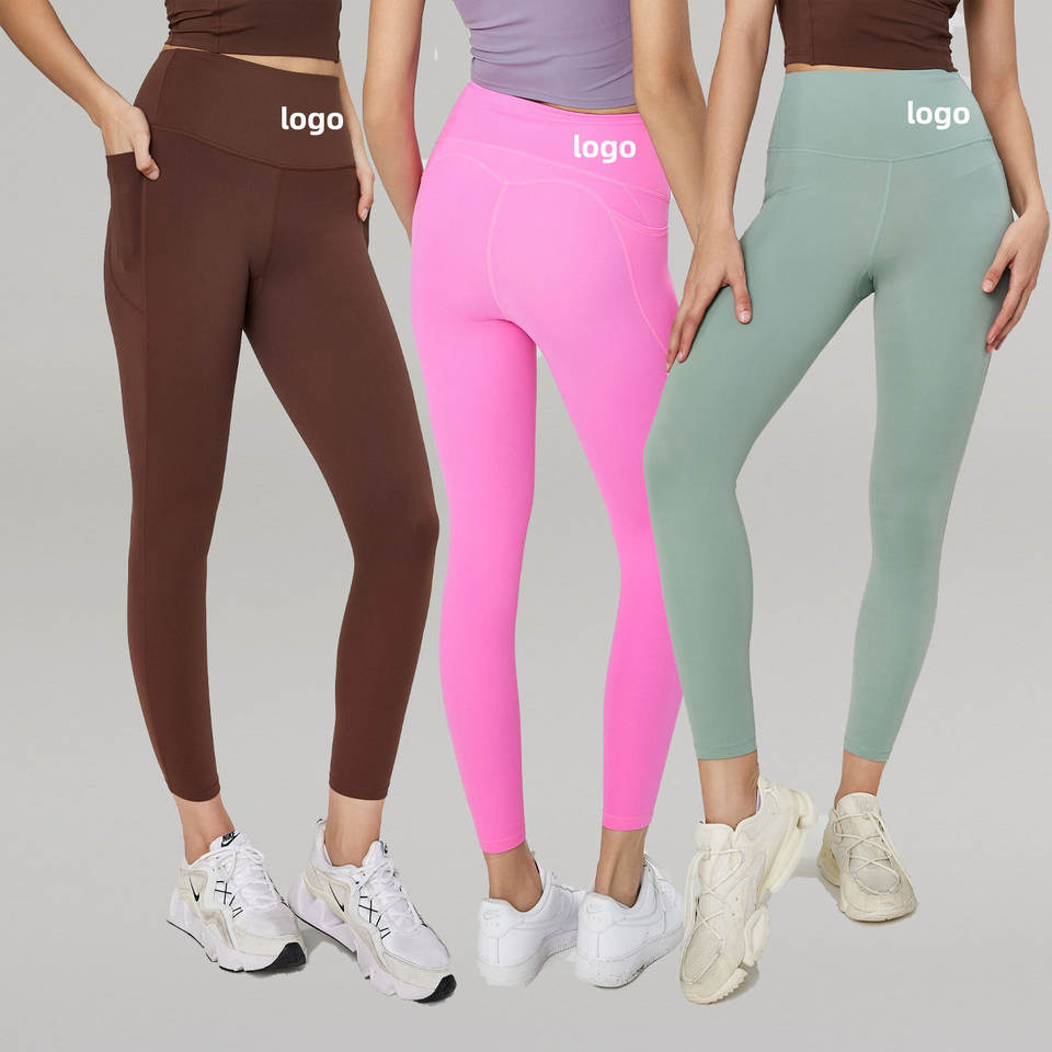 Pantalon de yoga d'entraînement de sport taille haute personnalisé en gros Leggings Lulu pour femmes Leggings de gym en polyester doux avec