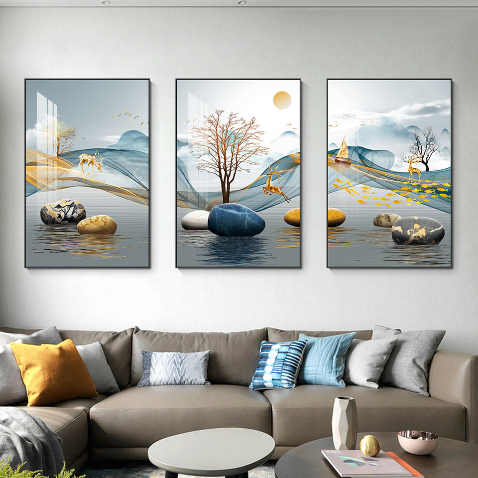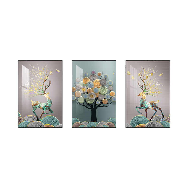 Peinture murale triptyque en porcelaine de cristal, décoration d'intérieur de luxe, cadre personnalisé, œuvre d'art animale, vente en gros