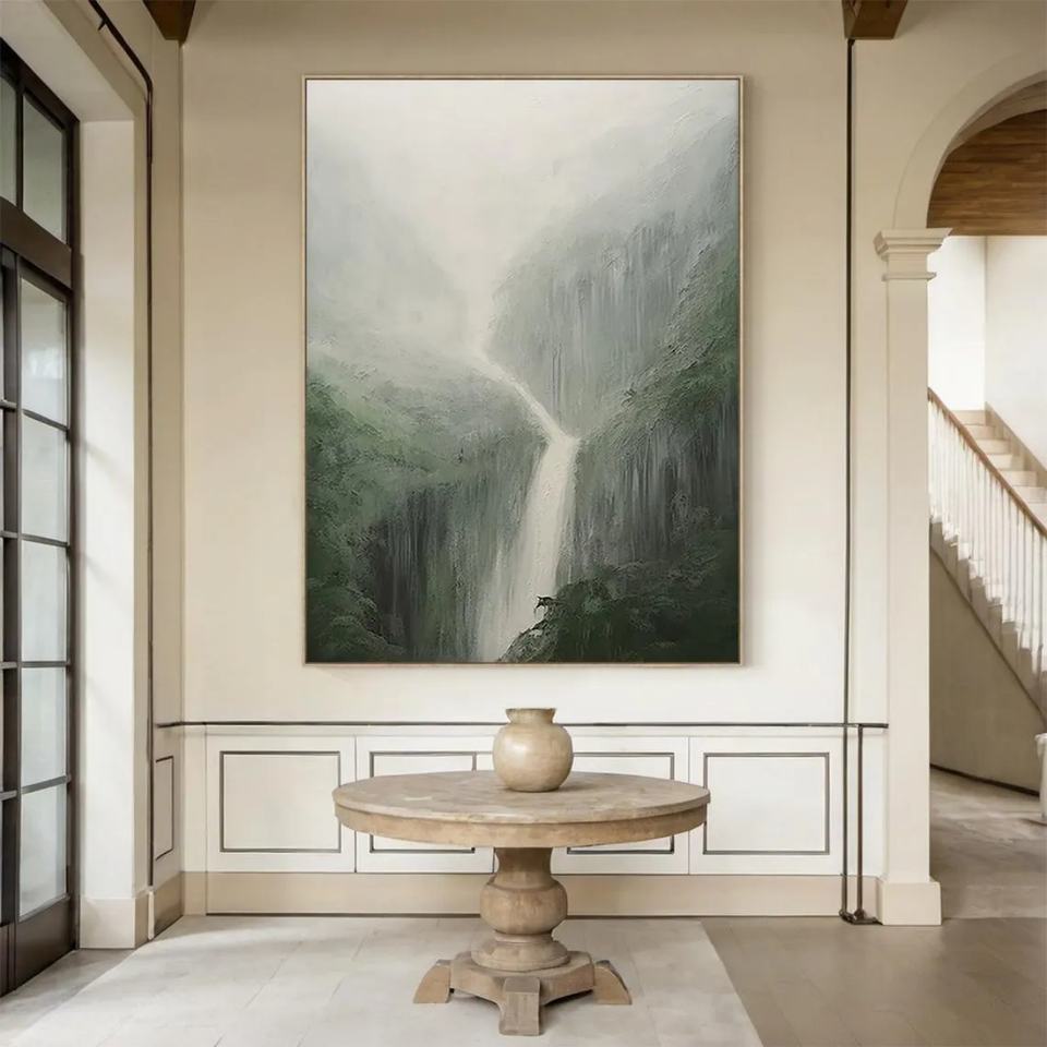 Peinture à l'huile sur toile personnalisée en gros, style Hype, réaliste, grande montagne abstraite verte, nature morte, texture 3D, décoration intérieure